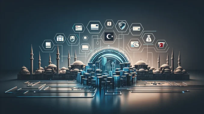 Secure payment and data protection depicted with digital locks and transaction icons.